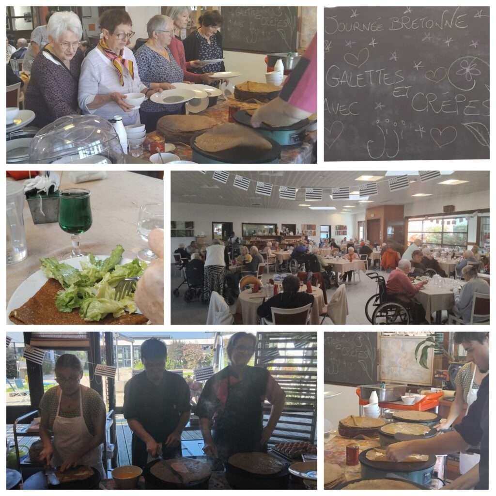 Lundi 13 l’ancienne animatrice Jiji est venu réaliser des crêpes et des galettes pour tous les résidents et le personnel, voila l’ehpad qui se transforme en crêperie bretonne avec décoration de la salle à manger, musique et là encore un bel après-midi festif.