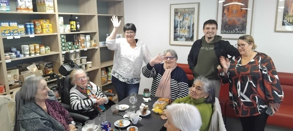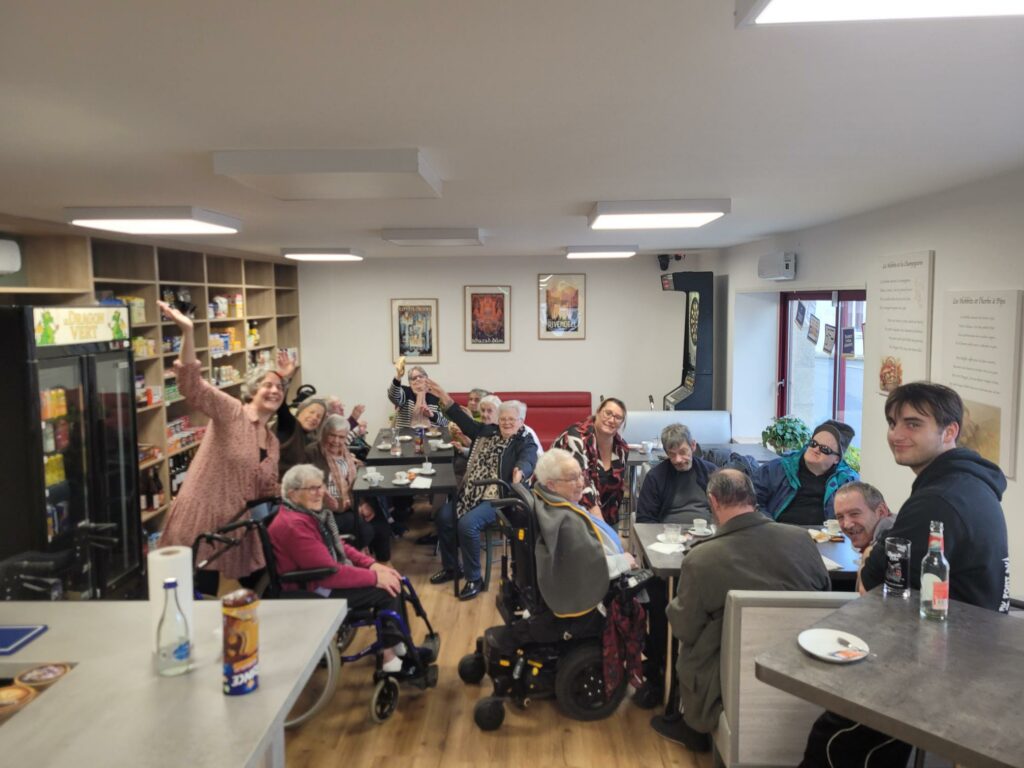A la demande de nos résidents, nous nous rendons chaque mois à la nouvelle boutique de Crédin » Le dragon vert » qui devient notre petit salon de thé mensuel. Ce qui permets de donner rendez-vous aux familles résidentes de Crédin mais aussi aux résidents des autres Ehpad alentour, comme ici les résidents de l’EHPAD de LIOT de Pontivy.