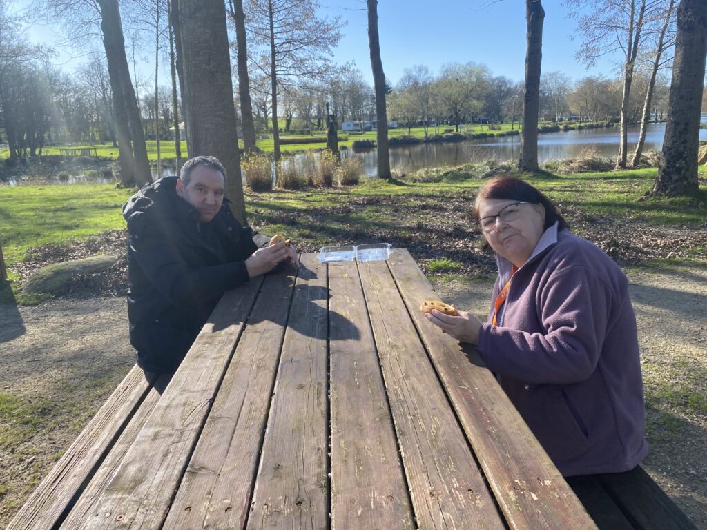 Mardi 25 Février. Courses à Intermarché Réguiny. Goûter au bord de l’étang