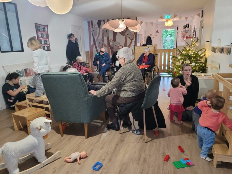 Aujourd’hui nous étions à la micro-crèche de Naizin. Tous les mois ce sont les enfants qui viennent à l’EHPAD, cette fois ce sont « les mamies
